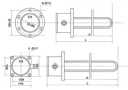 該加熱器為防爆加熱器,聯(lián)接法蘭采用圓法蘭和方法蘭的形式(方法蘭在型號(hào)后面加F),選定電壓可220V或380V,并可在接線(xiàn)腔內(nèi)安裝溫度控制器。質(zhì)量較為穩(wěn)定。